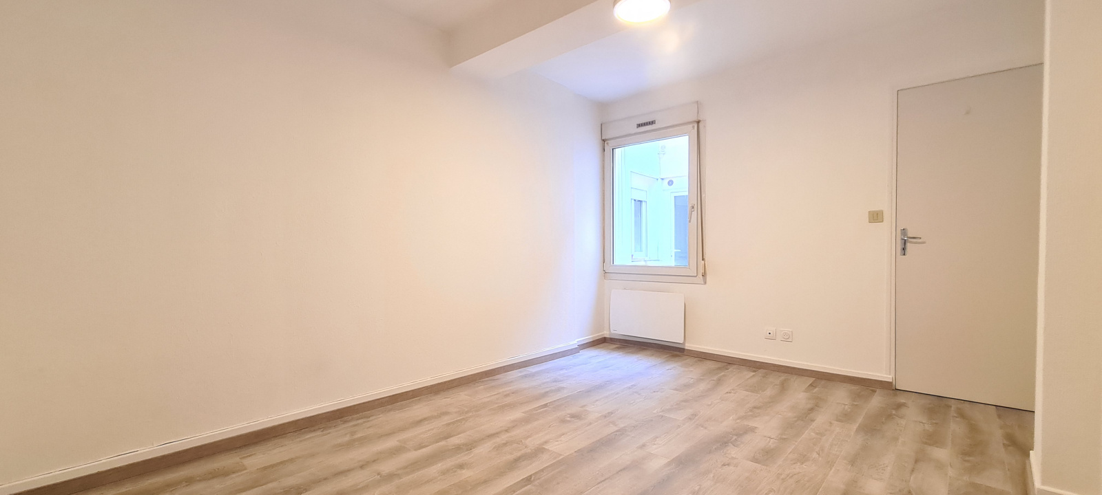 Appartement F2 de 41,40 m² envrion en loi carrez, comprenant : une pièce de vie, une cuisine, une salle de bain avec WC et une chambre. La pièce de vie donne sur la rue, la chambre et la cuisine donne sur une cour intérieure